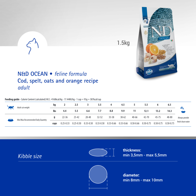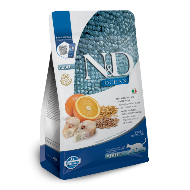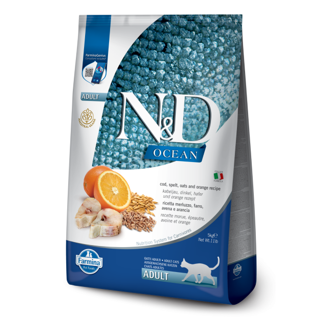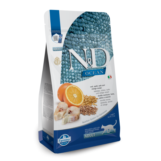 Farmina - N&D Ocean Feline Adult Low Grain Kabeljau, Dinkel, Hafer & Orange