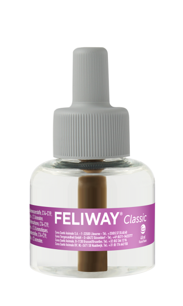 - Dieses „Glückspheromon“ vermittelt der Katze Sicherheit und Entspannung. FELIWAY® CLASSIC ist die synthetische Nachbildung dieses Pheromons und hat denselben entspannenden Effekt auf Katzen. Fehlen diese „Glückspheromone“, z.B. weil die Katze zu gestresst ist oder in eine ihr unbekannte Umgebung wie ein neues Zuhause gebracht wurde, sorgt FELIWAY® CLASSIC schnell und unkompliziert für Wohlbefinden – die Unterstützung für ein harmonisches Zusammenleben von Mensch und Katze.