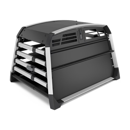 - Trennwand, abnehmbar zum Transport eines größeren Hundes oder neigbar, um auf einer Seite mehr Platz für zwei Hunde unterschiedlicher Größen zu schaffen