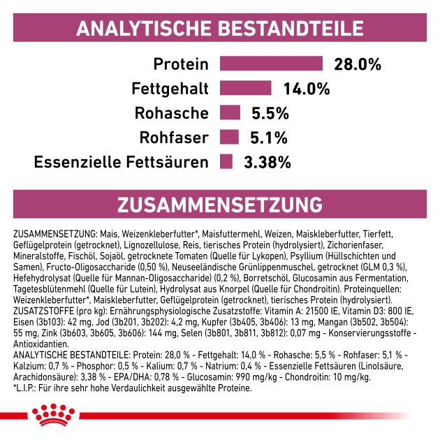 - Frühe Unterstützung der Nierenfunktion; mit hochwertige Proteine und begrenzter Phosphorgehalt, EPA + DHA sowie einem Antioxidanzienkomplex zur Unterstützung der Nieren bei ersten Anzeichen einer Nierenfunktionsschwäche.